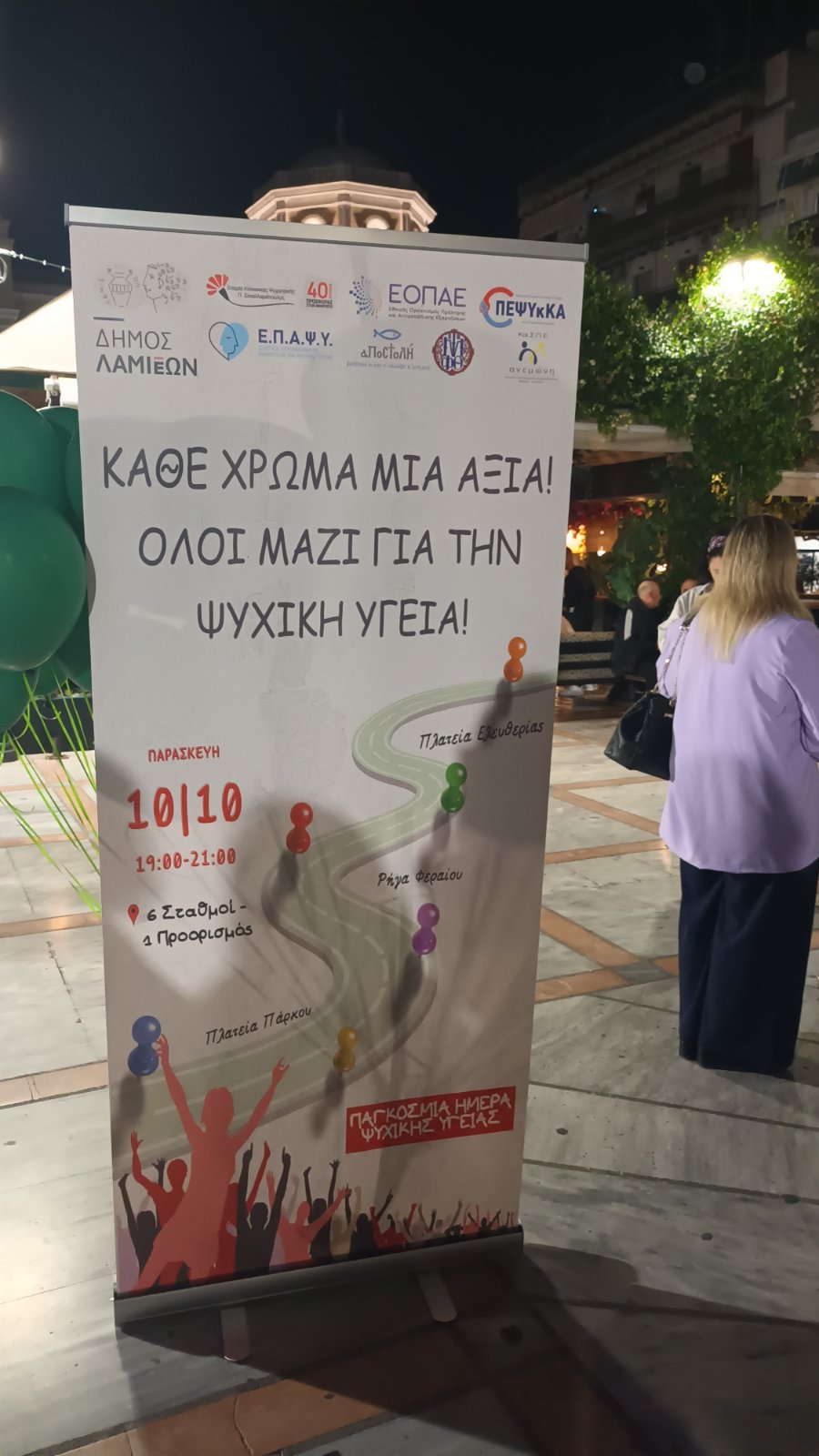 Κατ΄ αρχάς, μαθητές του Σχολείου μας, συμμετείχαν την Παρασκευή 10 Οκτωβρίου 2025, ημέρα αφιερωμένη στην αξία της ψυχικής υγείας, στην εκδήλωση με τίτλο «Κάθε χρώμα μια αξία! Όλοι μαζί για την ψυχική υγεία!», η οποία συνδιοργανώθηκε από τον Δήμο Λαμιέων με αρμόδιες Εταιρείες Περιφερειακής Ανάπτυξης και Ψυχικής Υγείας, καθώς με και τη ΜΚΟ «ΑΠΟΣΤΟΛΗ» – Οικοτροφείο Νόσου Αλτσχάιμερ και συναφών παθήσεων «Αγία Ερμιόνη». Οι μαθητές μας ενημερώθηκαν και ευαισθητοποιήθηκαν σε σχέση με την ψυχική υγεία και τα οφέλη της, που απορρέουν για κάθε άτομο ξεχωριστά, αλλά και για την κοινωνία στο σύνολό της. Η συμμετοχή των μαθητών μας στην εκδήλωση υλοποιήθηκε υπό την καθοδήγηση της καθηγήτριας Φυσικής Αγωγής κ. Βασιλικής Χαΐλη – Μαδούρα, της καθηγήτριας Φιλολόγου κ. Παρασκευής Κορμάζου και της καθηγήτριας Αγγλικής Γλώσσας και Φιλολογίας κ. Νίκης – Ελισάβετ Κυριαζή – Σιδέρη.