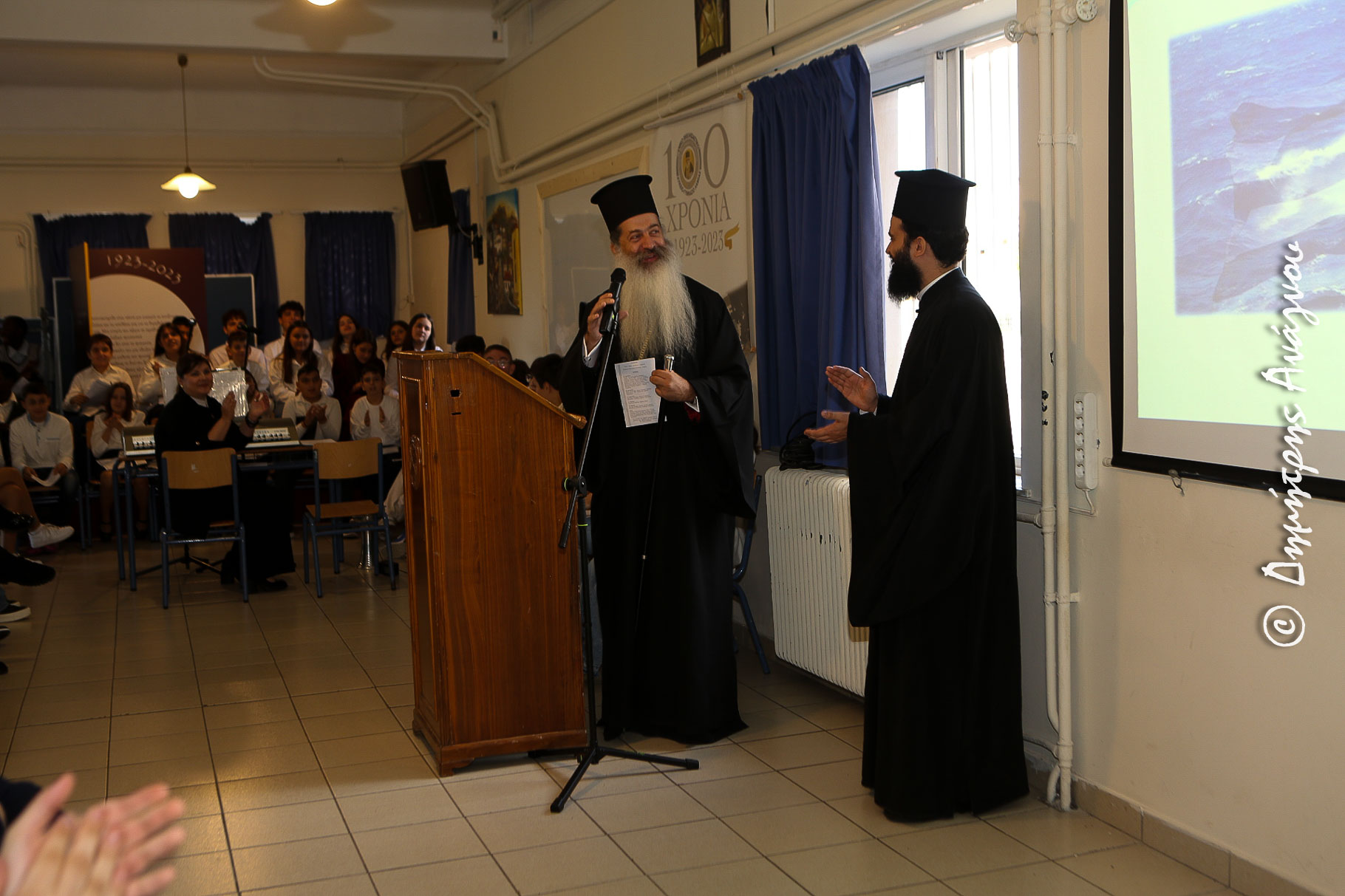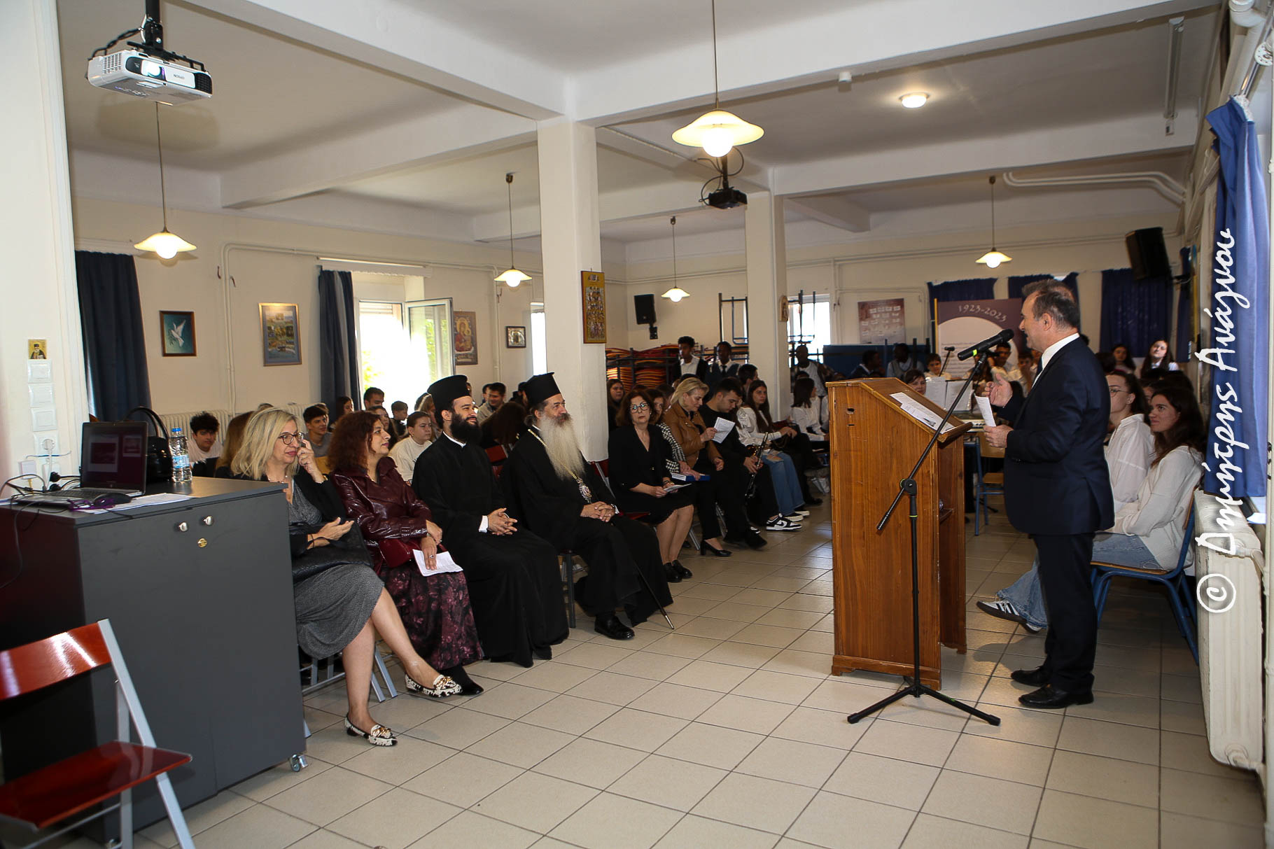 Την εορταστική εκδήλωση τίμησε με την παρουσία του ο Σεπτός Ποιμενάρχης μας, ο Σεβασμιώτατος Μητροπολίτης Φθιώτιδος κ.κ. Συμεών, ο οποίος με τον πάντοτε επίκαιρο και πατρικό του λόγο επεσήμανε στους μαθητές και στις μαθήτριες του Σχολείου μας ότι οφείλουμε και εμείς στη σύγχρονη κοινωνία, μέσα στο πλαίσιο του αέναου αγώνα της ζωής, να πούμε ένα ηχηρό «ΟΧΙ» στη βία και στο «σκοτάδι» και να αναφωνήσουμε ένα δυνατό «ΝΑΙ» στον Χριστό και στην πίστη μας.